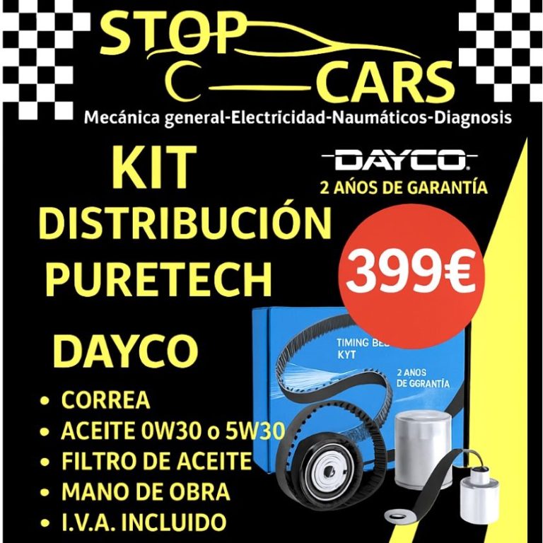 En stop cars realizamos el cambio del kit distribución,correa DAYCO reforzada ,tensores ,rodillo, cambio de aceite ,filtro de aceite MANO DE OBRA Y IVA INCLUIDO por solo 399,99